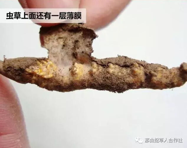 在新鲜虫草采挖回来后,剥开虫草表面的泥土,可以看到金黄色的虫体,还有一层白色的粘膜,剥开后再由经验丰富的藏民用小刷子作进一步的清洁工作,小心翼翼的仔细刷清虫体上每个小细节上粘的泥土,必须确保不伤害到虫草的完整性及表皮损坏。